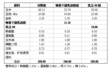試驗?zāi)康模?/strong>用乳寶80替代噴霧干甜乳清粉飼喂小豬的效果。